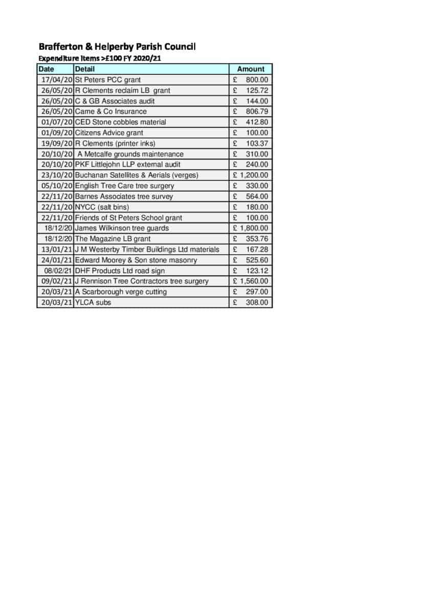 Expenditure above £100 2020-21